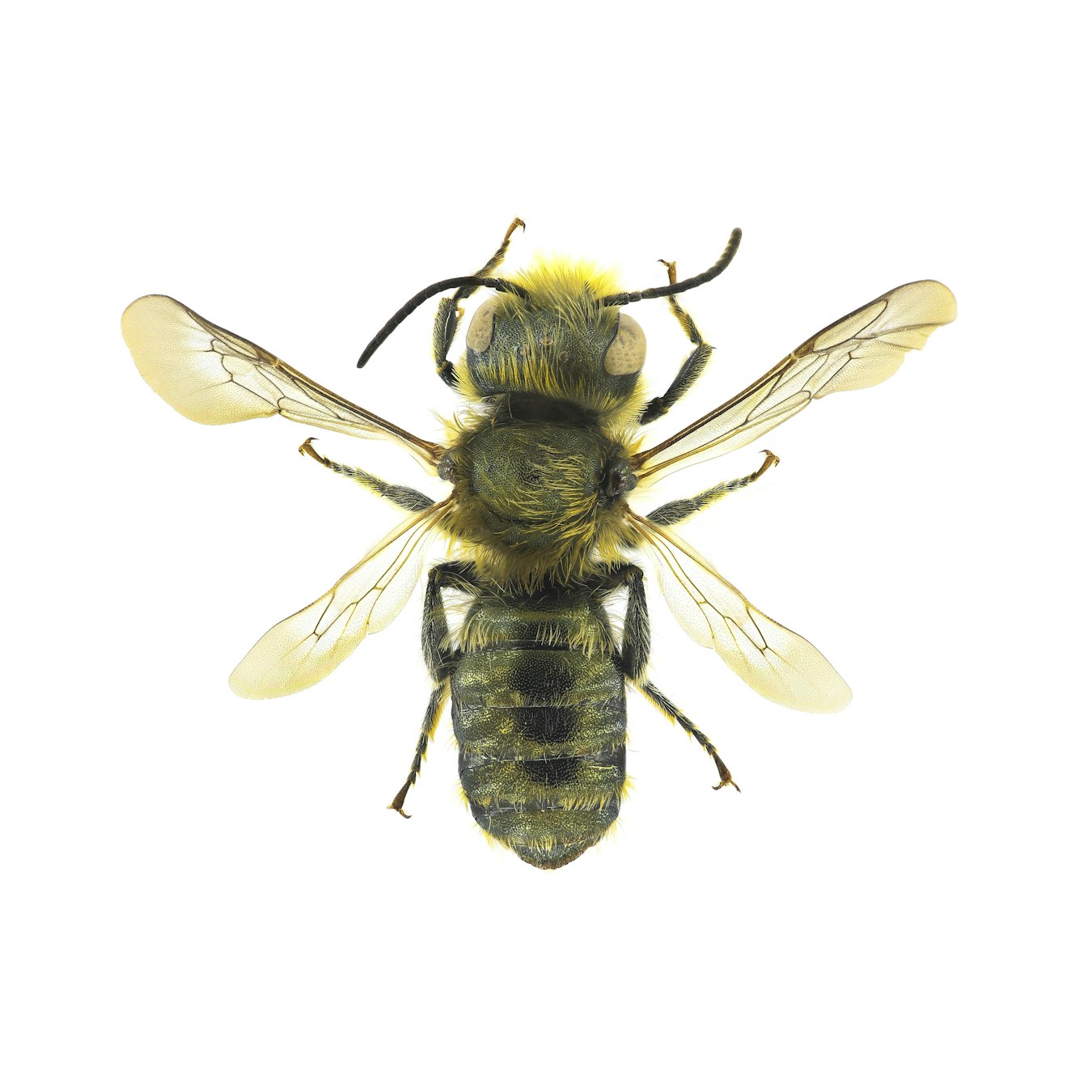 Il colore verde metallizzato distingue chiaramente i maschi di Osmia caerulescens dalle femmine, che sfoggiano riflessi blu iridescenti.